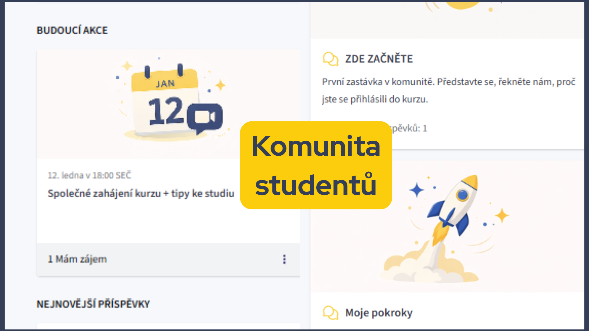 Součástí kurzu je komunita studentů, kde můžete sdílet své pokroky i dotazy.